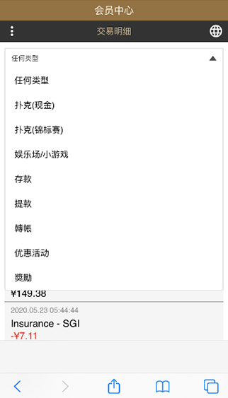 历史纪录:可以查询任何系统自动派发的奖励,比赛买入,牌桌买入等资讯,如有任何游戏退款,也会显示在此功能页面。